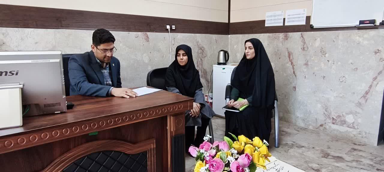 دیدار سرکار خانم کرمی مشاور کلانتری ١٢ معاونت فرهنگی اجتماعی نیروی انتظامی شهرستان سنقر با ریاست محترم دانشکده جناب آقای محمد مهدی خشمین و معاونت محترم آموزشی سرکار خانم طیبه اقبالی